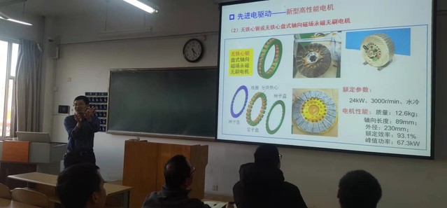 11月23日,山东大学教授、博士生导师徐衍亮应邀在8教502作题为“先进电驱动、电能储存及无线传输”的学术报告。 徐教授从先进电驱动技术、电储能技术及无线传输技术的研究现状、研究热点、关键技术研究等方面进行了深入的阐述。报告后徐教授与参会师生进行了深入的沟通和交流,徐教授结合自身科研经历对与会教师就如何进行高层次项目申报进行了指导,与参会学生就如何开展科学研究进行了讨论并提出具体建议。报告内容丰富,形象生动,深入浅出,使我院师生受益匪浅。