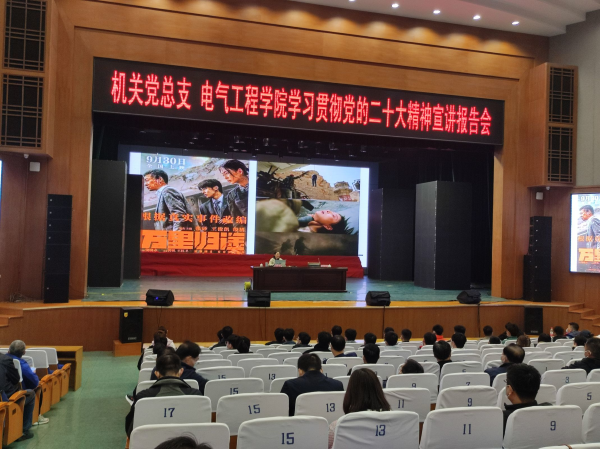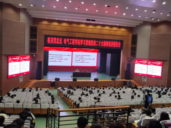 宏伟蓝图激荡人心,号角声声催人奋进。为深入学习宣传贯彻党的二十大精神,加强师生党员的培养教育,提升入党积极分子的理论素质,引导全院师生听党话、感党恩、跟党走。2022年11月8日下午两点半,电气工程学院在千人礼堂开展了学习贯彻党的二十大精神宣讲报告会。我院党总支特邀马克思主义学院刘娟老师作报告,我院党总支书记杜常青同志、院长李宏伟同志,学院全体教师及辅导员,以及全体学生党员、预备党员、入党积极分子参与了此次宣讲活动。