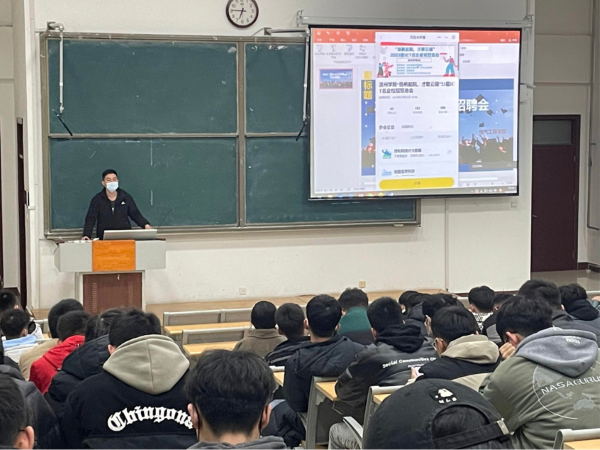 随后赵建斌老师对大家未来发展送上了美好的祝福,结合往届毕业生就业去向贴心指导,提醒同学们把握机会,主动出击,挖掘资源,积极收集就业信息。通过举例往届毕业生考研调剂和就业成功的典型案例,强调应届毕业生的身份宝贵,希望同学们调整好心态,分析自身的优势和劣势,明确自己的就业目标意向,及时调整就业策略。