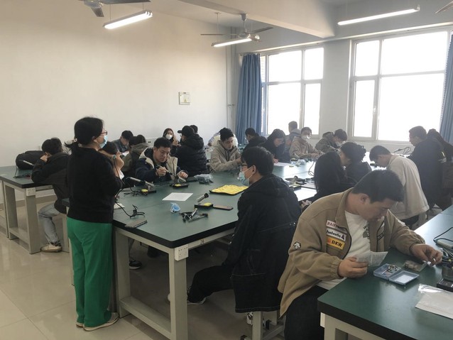 其次,由实验室张公永老师宣讲了实验室的用电安全,要求学生在焊接过程中要提高安全用电意识,注意用电安全,规范操作以及遇到特殊情况如何处理和应对等,保证学生及实验室的安全。实验室何芳和周宣征老师给同学们讲解了工具的使用,主要从电烙铁的规范使用方法、焊接技巧和焊接注意事项等方面做了详细的讲解。最后,王文锋老师从收音机的工作原理及元器件性能做了详细的讲解。希望学生通过此次实习,能够固化理论知识、提高动手能力、掌握基本技能、培养勤奋学风。