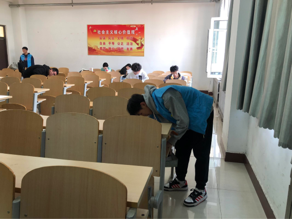 活动开始前,王莉老师动员大家以实际行动感恩党和国家的培育,明确此次活动的内容,即同学们帮助清洁工人捡拾八号教学楼垃圾、开展卫生大扫除、清洗乱涂乱画和“小广告”、清算卫生死角。随后,同学们穿上蓝色志愿服,手拿夹子、垃圾袋等清洁工具,两人一组,分工合作,配合默契,认真清理尤其是烟头、纸屑这种容易藏匿在墙角缝隙和绿化带中的杂物,不漏过每一处细节,充分发挥了的志愿服务精神,真正用自己的行动来回报国家、回馈社会。本次活动不仅仅是一场志愿服务,也是一次对受资助学生的感恩教育活动,鼓励同学们学习雷锋精神,把精神落实到学习生活中去。