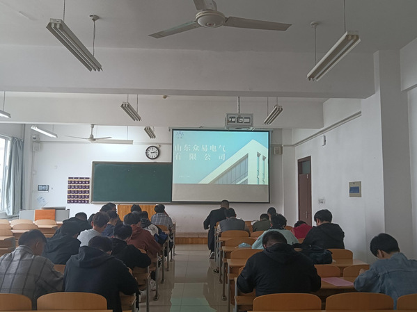 宣讲会上,山东众易电气有限公司就企业简介、职业介绍、招聘流程等方面展开介绍,表明企业需求,帮助同学们明确就业岗位。同时,山东众易电气有限公司相关负责人就公司的规章制度、福利待遇、企业文化等多方面向参会学生做了详细介绍,帮助同学们进一步企业情况。在最后的答疑环节,同学们结合自身需求,积极发问,负责人详细解答了有关新人入职培训、节假日福利、工作绩效考核等方面的疑问。企业宣讲人向同学们抛出橄榄枝,期待与同学们共享发展机遇,共创美好的未来。