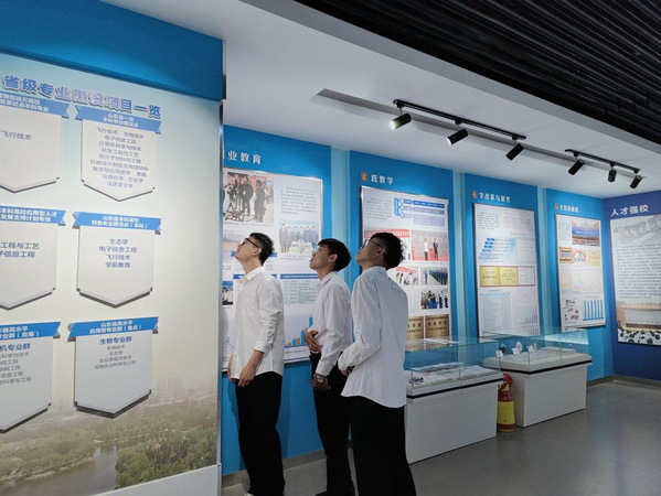 活动中,全体党员跟随讲解员依次参观了各展厅,感受学校自建校以来的发展历程和历史变迁。从师范专科院校到如今成为航空特色鲜明的应用型本科院校,是一代代滨院人拼出来、闯出来的,通过了解我校“升本”、“申硕”等各个重要节点,体会到每一个变革的脚步都凝聚着我校“自强不息、守正出奇”的学校精神。通过了解学校建设发展历程,深切感受学校深厚的历史文化底蕴,汲取了不忘初心、牢记使命的奋进力量。