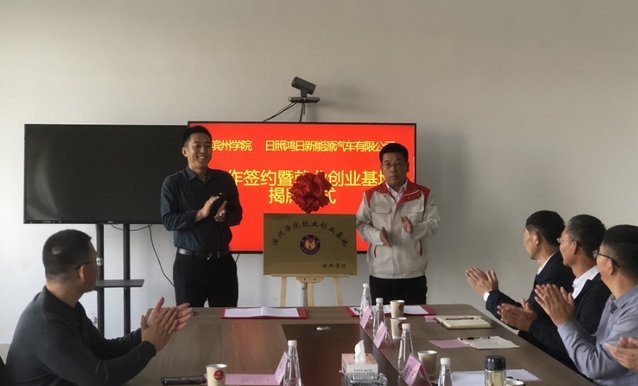 10月25日,学院党总支书记杜常青带队赴日照市五莲县与日照鸿日新能源汽车有限公司签订就业创业基地合作协议,并为就业创新基地揭牌。日照市五莲县人大常委会副主任孙志刚、五莲县高泽街道党工委书记赵尔好、鸿日集团副总裁刘成宁、日照鸿日新能源公司总经理张立新参加此次活动。