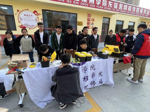 本次活动以“不忘为民谋福初心,牢记为民服务使命”为指导思想,在滨州学院东宿舍区开展家电公益维修活动,在活动现场,同学们迅速摆放维修工具和配件,搭建起临时维修站点,为社区居民提供家电维修服务。居民们纷纷拿出家里的电风扇、电饭煲、电磁炉等小家电进行维修。同学们认真检查每件家电,对损坏的部件进行维修或更换,同时对电器使用安全知识进行详细讲解,让居民们感受到贴心的服务。同学们尽心尽力地帮助居民解决电器设备问题,为社区居民提供了更好的服务,为建设更美好的社区贡献了力量。