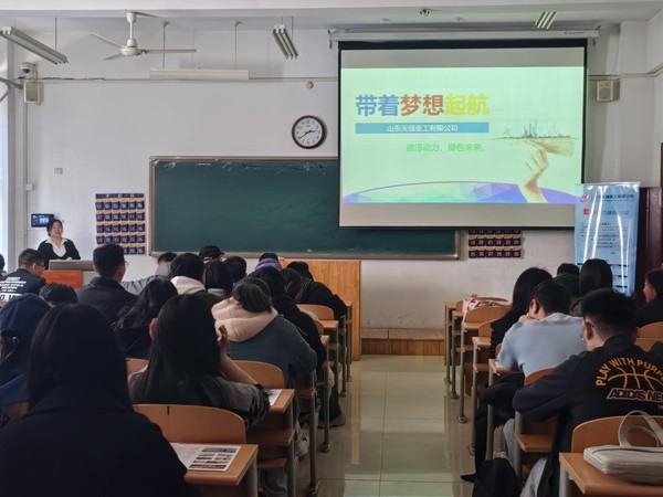 在宣讲会上,山东天瑞重工有限公司的宣讲人以视频、图片和PPT等形式,从公司发展情况出发,对公司的背景和招聘岗位进行介绍,并讲解了行业形势及未来发展方向,立足公司实际提出人才需求,加深了学生对工作岗位的了解。同时,宣讲人从公司体系、文化、薪资标准和用人标准等方面呈现公司全景,帮助学生了解和规划未来的职业生涯。