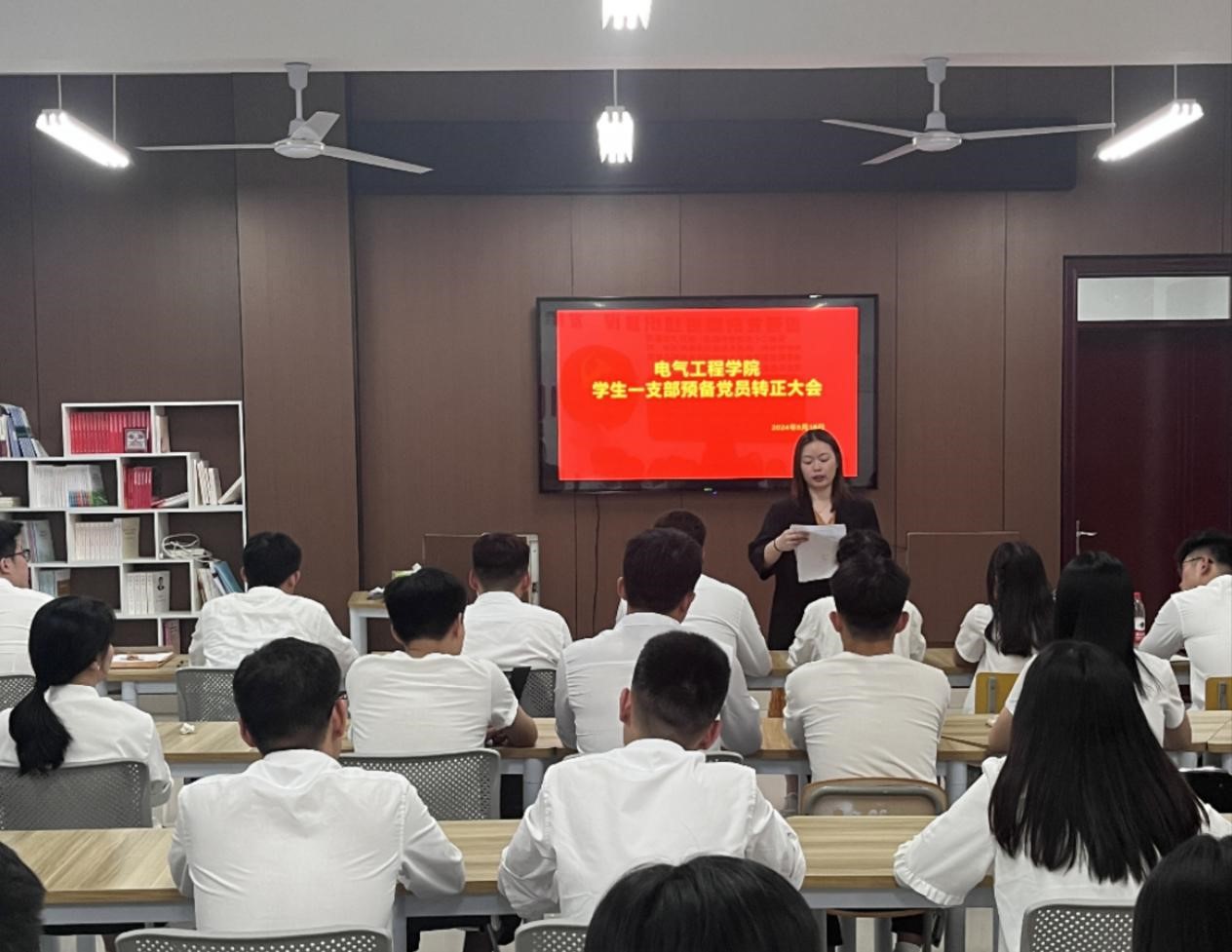 2024年6月18日,电气工程学院学生第一、二党支部在11教310活动室召开预备党员转正大会,会议分别由各党支部书记主持,全体党员参加会议。