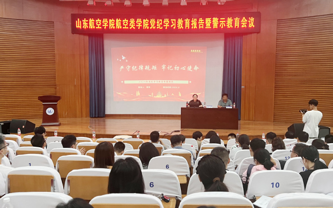 为引导师生党员学纪、知纪、明纪、守纪,以案为鉴、警钟长鸣,切实把遵规守纪内化为政治自觉、思想自觉和行动自觉,不断推进党纪学习教育走深走实,机电工程学院联合飞行学院、乘务学院、航空工程学院、机场学院和电气工学院在明德报告厅举办党纪学习教育报告暨警示教育会,机电工程学院党总支书记主持,航空类学院共300余名干部师生党员参加会议。