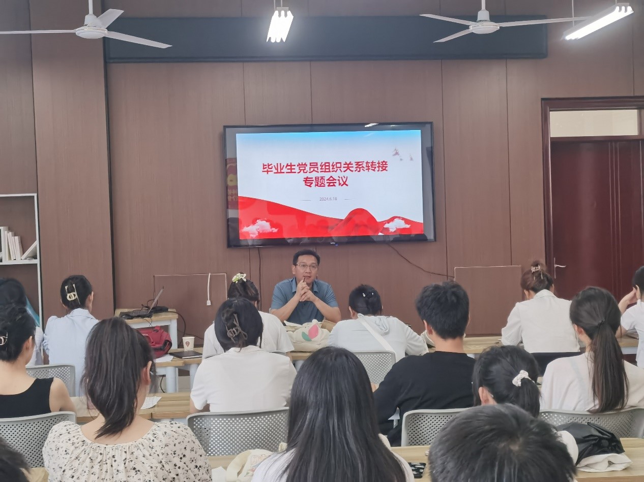 会上,金志杰介绍了组织关系转接的重要性和必要性,要求各毕业生党员要高度重视此项工作,确保每一位党员都能够及时、准确地转接组织关系。同时他就毕业生党员组织关系转接类型、组织关系转接流程、转接过程中可能出现的特殊情况及表格信息填写等事宜进行重点讲解。金志杰强调,党组织关系转接是保持党员身份连续性的重要环节,需要严肃对待;毕业生党员作为毕业生中的先锋群体,需要在就业、文明离校等方面积极发挥党员先锋模范作用,为学院毕业生做好表率。