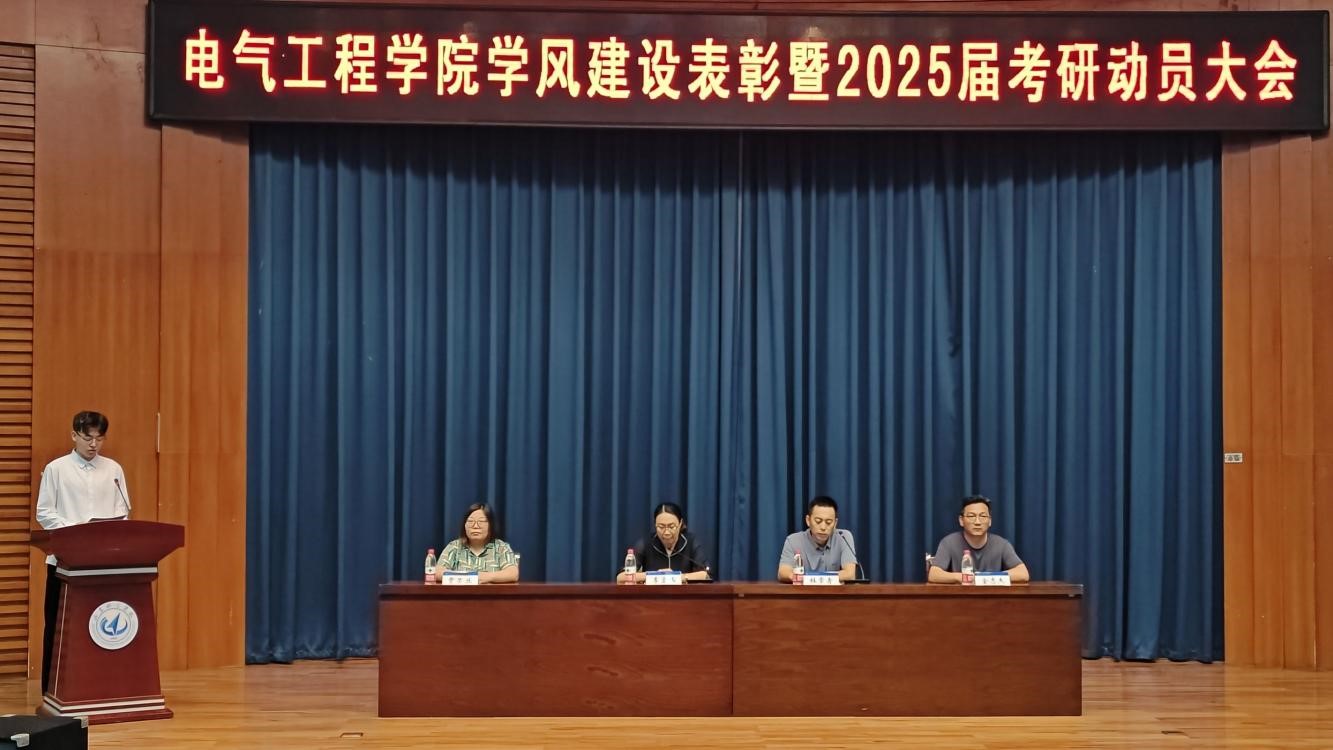 为持续加强我院学风建设,营造良好的学习氛围,帮助2025届考研学生明确考研方向,树立考研目标。电气工程学院于2024年6月20日在明德报告厅举办学风建设表彰暨2025届考研动员大会。本次会议由电气工程学院党总支书记杜常青主持,院长李宏伟、党总支副书记金志杰、副院长贾荣丛、2025届毕业班班主任、全体辅导员、教师代表、2025届全体毕业班学生和其他年级学生代表参加了本次大会。