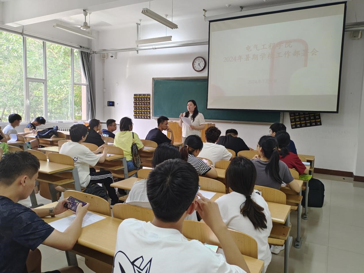 为加强暑期留校学生管理,确保留校学生人身财产安全和校园安全稳定,做好留校学生学习、生活服务工作。2024年7月10日,电气工程学院在8教101召开2024年暑期留校学生安全管理专题会议,辅导员徐可、全体留校学生参加会议。