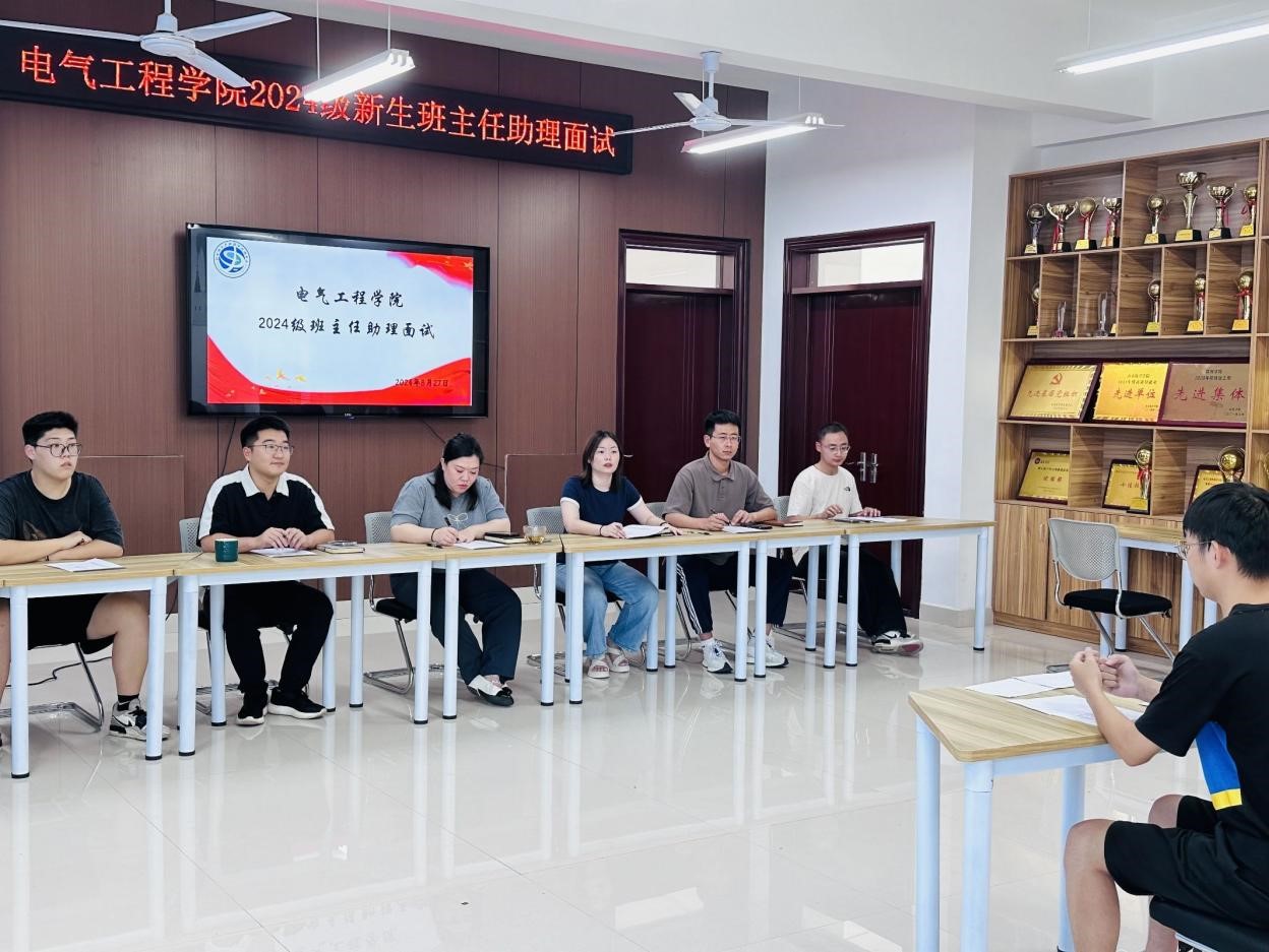 为扎实做好2024级新生入学教育工作,搭建师生沟通纽带桥梁,帮助新生尽快完成身份转换,适应大学生活。2024年8月27日,电气工程学院于11号教学楼310会议室开展了2024级班主任助理选拔工作,学院全体辅导员参与面试,39名学生党员、学生干部通过资格审查参与竞聘面试。