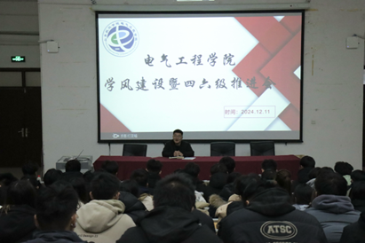 为加强学院学风建设,营造比学赶超、朋辈协同的优良学风氛围。2024 年 12 月 11 日,电气工程学院于 8 教 106 教室召开学风建设推进会。辅导员商世昌主持,部分同学代表参加。