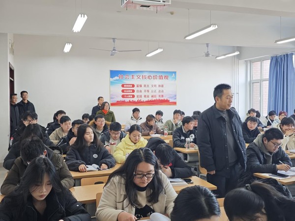 伴随着熟悉的上课铃声,学院领导与同学们一起走进课堂,与师生同上“开学第一课”。杜常青一行随机进行了课堂督导,重点检查教学组织、课堂互动及教学大纲执行情况。杜常青对师生新学期昂扬向上的精神状态和井然有序课堂秩序给予赞扬与肯定,并强调,要坚守立德树人根本任务,将“以学生为中心”的教学理念贯彻到教育教学工作全过程,讲深讲透专业知识,切实保证课堂质量;要持续做好开学初学生心理调适工作,及时回应学生关切,密切关注学生状态,营造良好学风。