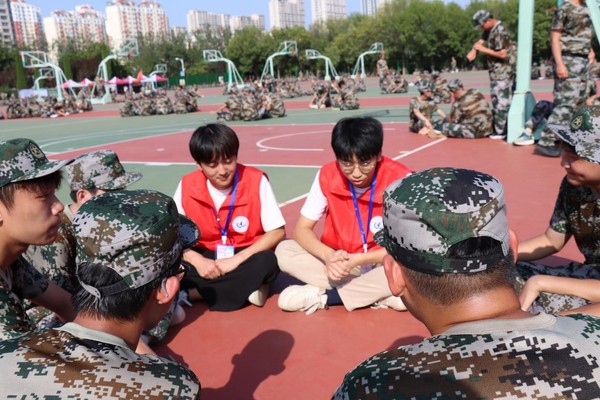 在军训现场,党员先锋岗的学生党员们化身“后勤保障员”,时刻关注新生的需求。他们顶着烈日,在训练场边设立服务点,备齐了藿香正气水、创可贴、矿泉水等常用物品,及时为身体不适的新生提供帮助。看到有新生因训练强度大而面露疲惫,党员们会主动上前搀扶,轻声安慰并协助送往休息区;训练间隙,他们还会组织新生开展轻松的小游戏,缓解大家的紧张情绪,让严肃的训练场增添了几分温馨。